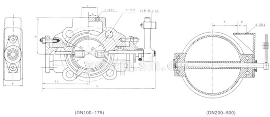 法蘭連接尺寸符合JB78標準PN2.5規(guī)定。DN>500旳外形及安裝尺寸同ZSCW-6和ZSLW-6。