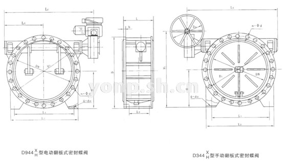 | DN | D1 | D | L | b | n-Φd | L1 | L2 | Η | L3 | do | 0344X/H-0.5 | D944 X/H -0.5 | ||||||