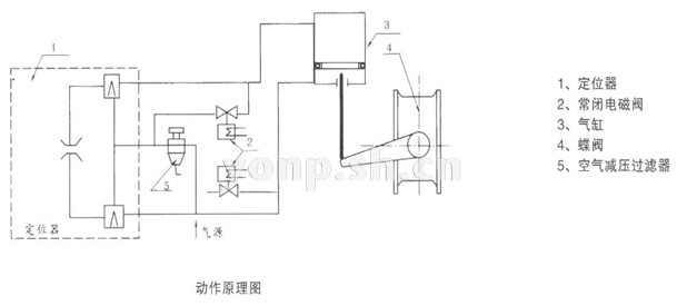 1、自動調(diào)節(jié)控制:當(dāng)閥門定位器接受標(biāo)準(zhǔn)電(氣)信號,電磁閥處于失電狀態(tài),定位器與氣缸連通,氣缸動作受標(biāo)準(zhǔn)信號控制,通過定位 器使閥板轉(zhuǎn)動,實現(xiàn)比例調(diào)節(jié)。(定位器動作原現(xiàn)及技術(shù)參數(shù)見"附錄")。