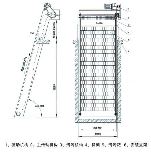 5、 當(dāng)B>1500mm時(shí),應(yīng)考慮并聯(lián)格柵結(jié)構(gòu)(兩組鏈條由一個(gè)傳動(dòng)配置拖動(dòng))。