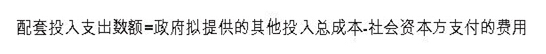 第二十二條配套投入支出責任應綜合考慮政府將提供的其他配套投入總成本和社會資本方為此支付的費用。配套投入支出責任中的土地等實物投入或無形資產投入,應依法進行評估,合理確定價值。計算公式為: