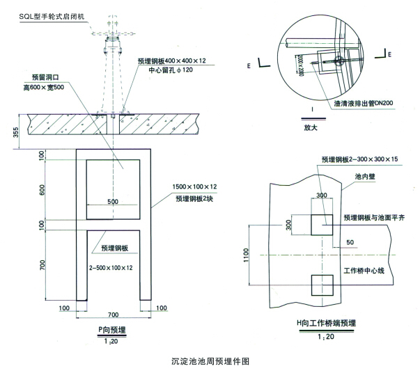 2、 需要溢流板,擋水板、排渣斗、套筒閥等配件時(shí),請(qǐng)予注明。若遠(yuǎn)程控制時(shí),套筒閥需用電驅(qū)動(dòng),請(qǐng)予注明,渣斗及堰板安裝參見周邊傳動(dòng)刮吸泥機(jī);