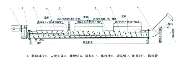 螺旋輸送壓榨機主要用來對格柵分離出的柵渣進行輸送壓榨,減小柵渣的體積、去除柵渣中絕大部分水份,以利于運輸與焚燒或填埋處置。