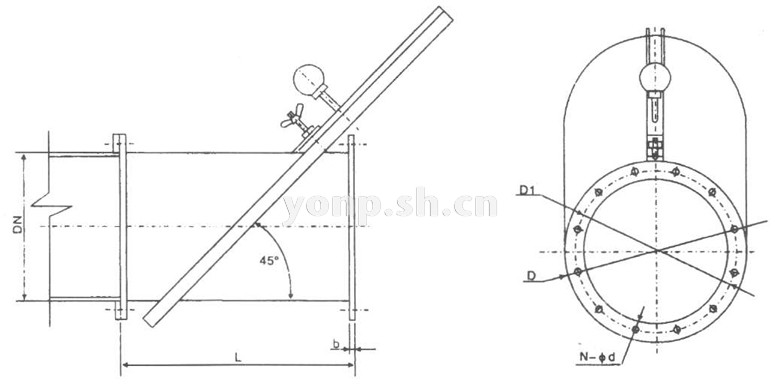 該閥可水平或垂直安裝,但氣流方向必須是、和閥體上的箭頭方向一致,水平管道上插板應(yīng)以45°順氣流安裝,在垂直管道(氣流向上)上插板以45°逆氣安裝。其公稱直徑指管道外徑值。
