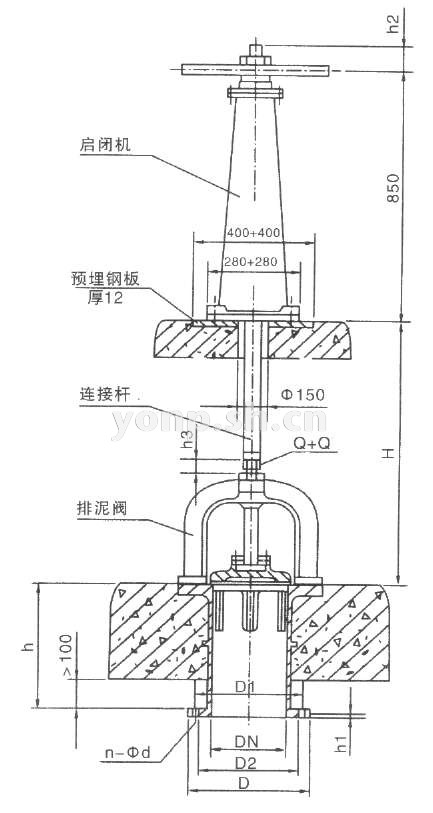 | 型號 | 口徑DN | D2 | D1 | D | h | H1 | h2 | h3 | n-φd | Q+Q |